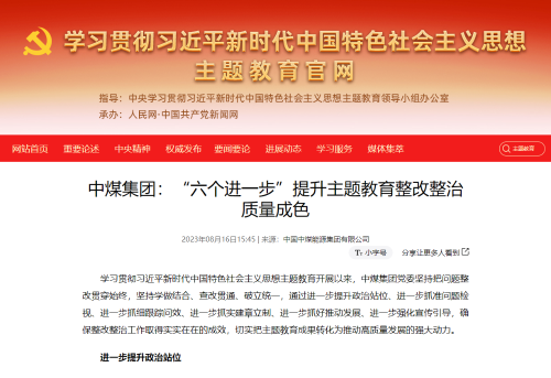 【中央主题教育官网】中煤集团:“六个进一步”提升主...